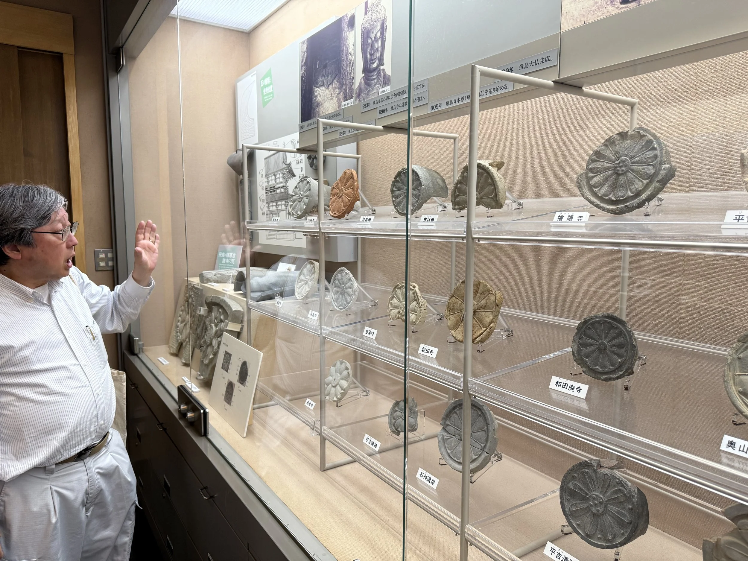 Prof. Sasaki guides participants around the Meiji University archaeology collection.
